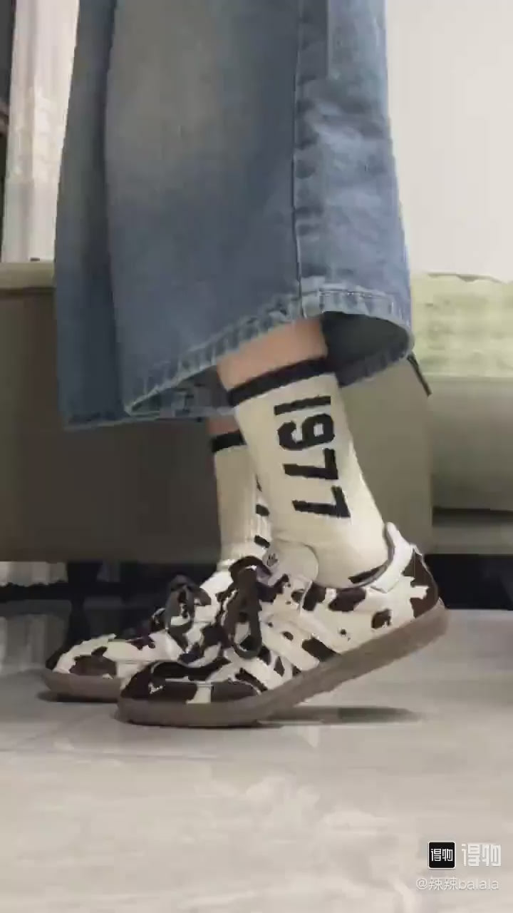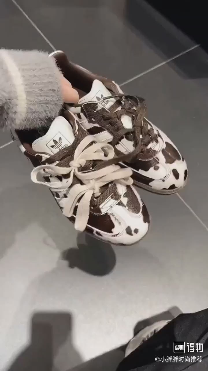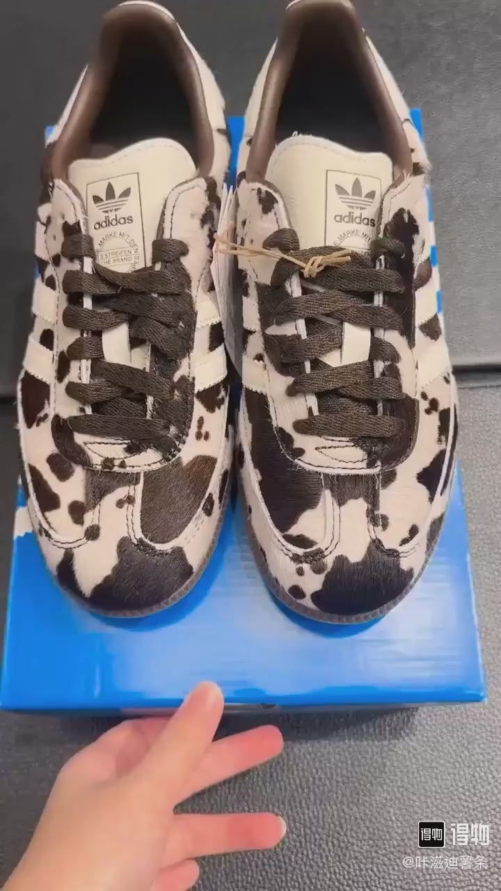 The Samba OG "Cow Dark Brown Print" redefines the iconic design with a bold countryside-inspired twist. Its cream base is covered with deep brown cow-print patches that add texture and personality to the classic silhouette. Brown laces and a matching gum sole tie the look together, while the crisp white stripes and heel tab bring balance and contrast.